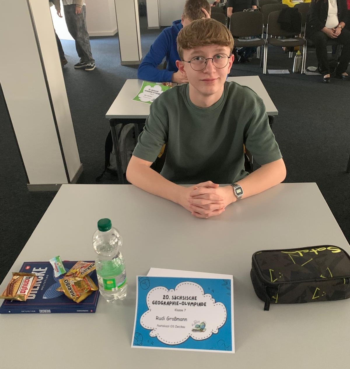 Rudi Großmann aus der Klasse 7a hat beim Endausscheid der 20. Sächsischen Geographie-Olympiade in Dresden von 15 Teilnehmern aus ganz Sachsen den 7. Platz belegt. Ganz herzlichen Glückwunsch an Rudi!Siehe auch:
